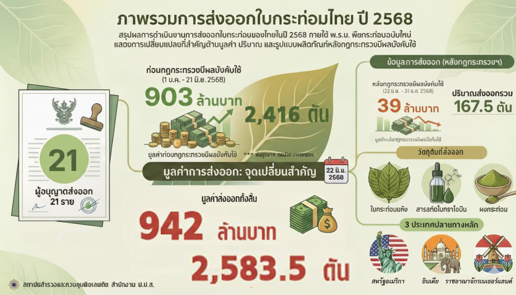 ภาพรวมการส่งออกใบกระท่อมไทยปี 2568